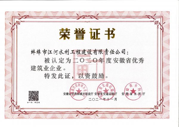 2020年度安徽省優秀建筑業企業
