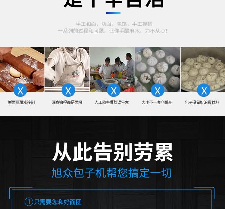 XZ-87型全自動包子機,可生產各種肉包、菜包、肉菜包、小籠包、湯包、水晶包、圓饅頭、奶黃包、豆沙包、叉燒包、南瓜餅、煎堆等十幾種包餡制品。適用于賓館、飯店、學校、機關企業食堂、饅頭或包子加工廠、早餐工程店及速凍食品廠等單位。可滿足不同客戶群體。免費提供工藝技術。免費上門培訓指導安裝。