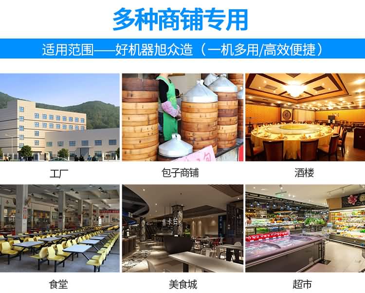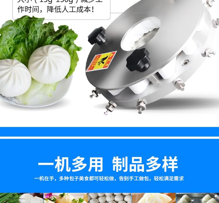 設備工作效率相當于8-12人工人同時手工制作,是現在招工難,高薪水,人員不穩定的時期的理想、高效的設備,適用于賓館、飯店、學校、機關、食堂、饅頭或包子加工廠、早餐工程店及速凍食品廠。