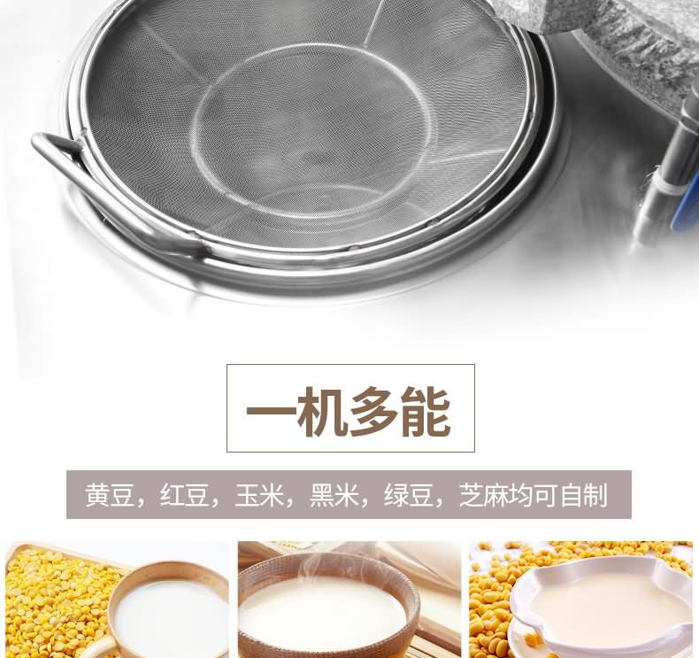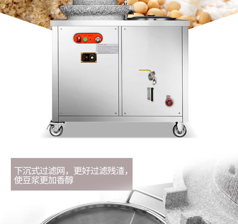 1、石磨使用壽命長,電機帶動,控制方便,磨漿速度快,過濾采用下沉式濾網(wǎng),易清洗;
