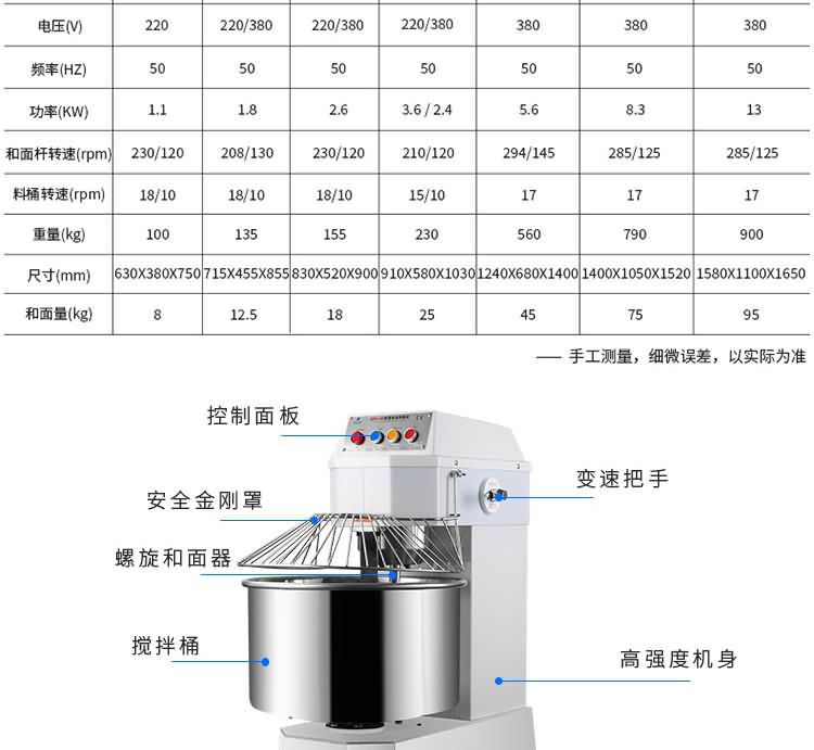 名稱雙速雙動和面機系列 電源 功率 產量 尺寸 重量 規格 其他