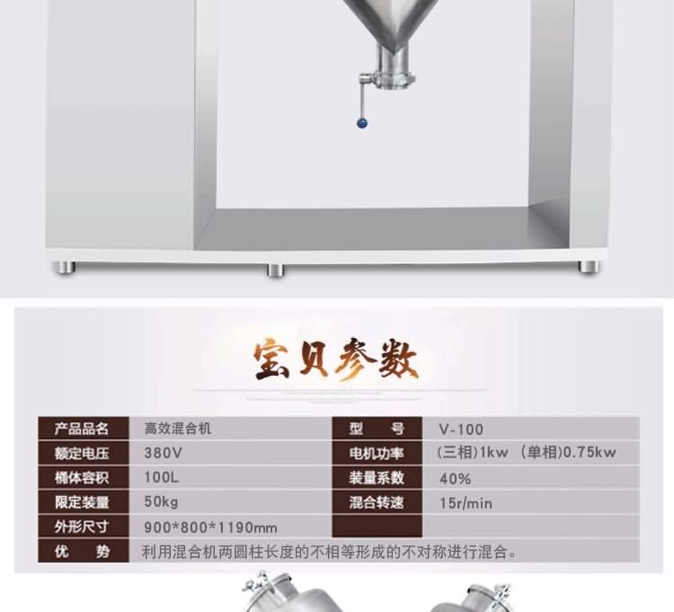 名稱高效混合機 電源單相電/三相電 功率0.75/1kw 產量50kg 尺寸900×800×1190mm 重量 規格 其他