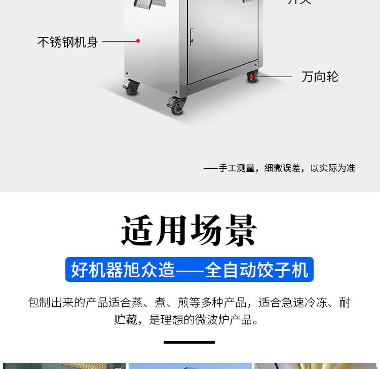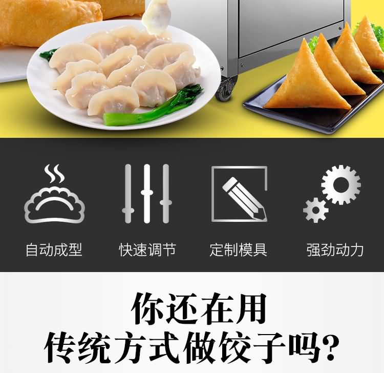 備注: | 更換機頭可做春卷、餛飩、火鍋水餃、珍珠水餃、咖喱餃子、花邊餃子、鍋貼餃子 |