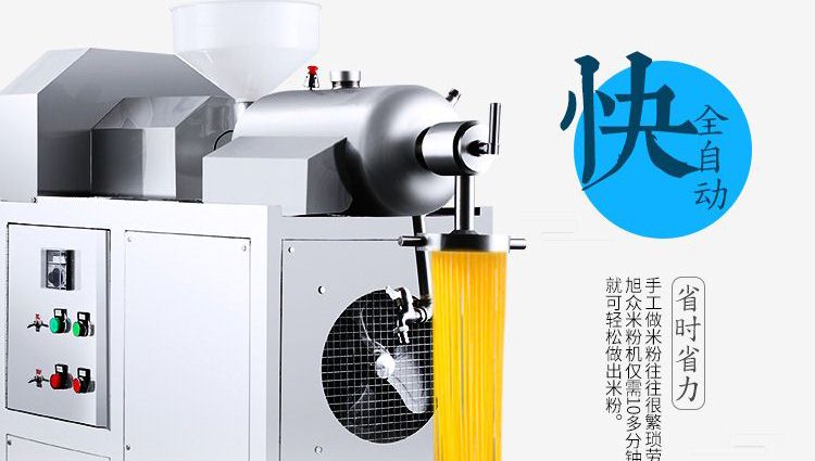 改進(jìn)型米粉、米線專(zhuān)用機(jī),裝有自動(dòng)溫空裝置,整個(gè)生產(chǎn)過(guò)程設(shè)備均在恒溫狀態(tài)下運(yùn)行,自動(dòng)化程度高,操作簡(jiǎn)單,l人即可生產(chǎn)??缮a(chǎn)米粉、米線、桂林米粉、過(guò)橋米線、年糕等產(chǎn)品。各種形狀都可生產(chǎn)(圓、扁),加工食品外表光滑,厚薄、寬窄、粗細(xì)均勻可調(diào),筋軟適度,有彈性,口感柔軟、味道純正。