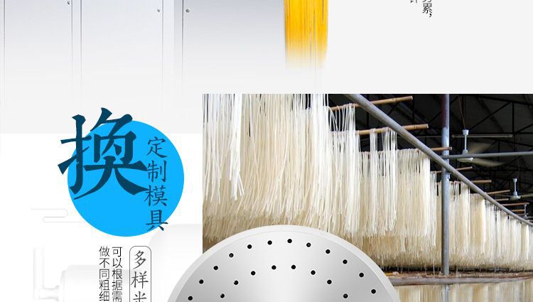 ◆ 米粉機(jī)生產(chǎn)多樣性可生產(chǎn)米粉、米線、粉絲、粉條、年糕、玉米面條、各種雜糧粉絲、各種面條、雜糧面條、彩色面條以及以紅薯、玉米、大豆、蠶豆等制成淀粉為原料的等多種食品而且每種食品厚薄、粗細(xì)等規(guī)格可根據(jù)需要任意調(diào)整。
