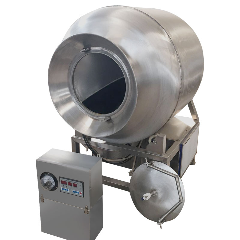 真空滾揉機是在真空狀態(tài)下,利用物理沖擊的原理,讓肉在滾筒內(nèi)上下翻動,相互撞擊、摔打,達到按摩、腌漬作用,使肉均勻的吸收腌漬,提高肉的結(jié)著力及產(chǎn)品的彈性,通過滾揉、 按摩能使肉體蛋白質(zhì)分解成水溶性蛋白,易被人體吸收,同時能使添加料(淀粉等)與肉體蛋白質(zhì)互為融合以達到肉質(zhì)變嫩,口感好,出口率高。真空滾揉機具有肺呼吸功能,讓產(chǎn)品在滾筒內(nèi)膨脹,縮小了往復(fù)運動,改善了肉組織的結(jié)構(gòu),提高了切面效果。本機采用支架普通不銹鋼,滾筒(接觸食物部分)選用食品級304不銹鋼材質(zhì)。