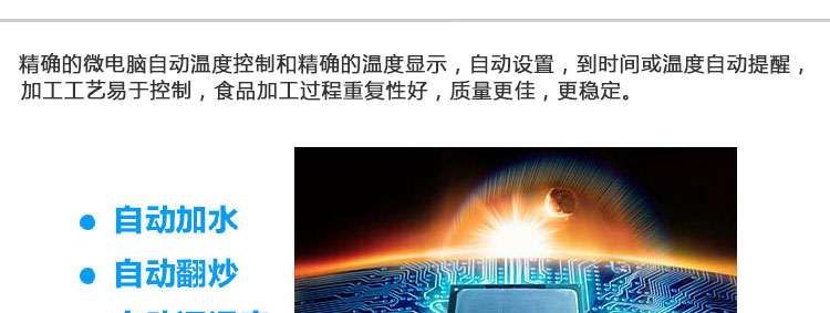 名稱炒菜機 電源370-420(V) 功率20(Kw) 產量 尺寸1400*1100*1500(mm) 重量600(Kg) 規格 其他適用范圍:面包房設備,休閑速食設備,西餐店設備