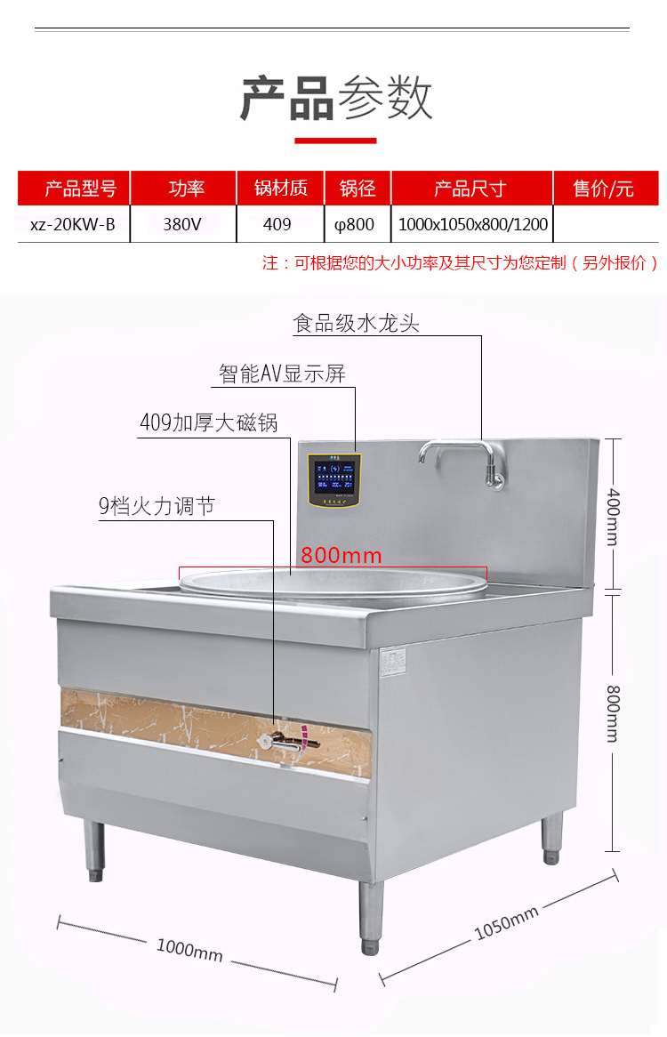 | 配置 | φ800大鍋409板材2.5mm厚,201不銹鋼外殼厚:側板1.0mm-20C面板1.5mm-20C |