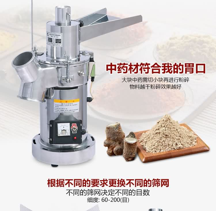 HK-08B落地流水式粉碎機又名高性能粉碎機、體積小、造型美觀、移動方便、操作簡單,特殊構架運轉絕無振動、噪音最低、安全性高、性能穩定、衛生潔凈、損耗極低、效率高、細度準確可調;與藥物接觸部分用不銹鋼制作,符合衛生標準,除制細粉外,還可制煎湯劑用的粗顆粒飲片(用粗顆粒飲片煎煮湯藥,可提高飲片有效成分的溶出率,節省大量藥材),對中西藥物、化工原料、食品原料、礦物、土壤、糧食、煤炭、實驗原料有極理想的粉碎效果,是粉碎脆性物料的首先機型。是目前診所、藥店、醫院藥房、研究所、實驗室、試制室、大中專院校、科研單位、商場、家庭粉碎的理想設備。