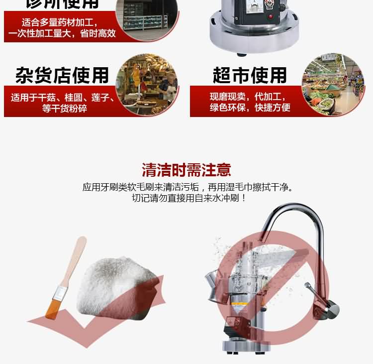 本機屬實驗型粉碎機,不適合長時間工作,不能作為工業粉碎機長時間連續工作生產,每分鐘投放物料量應該小于或等于出料量,不得大于出料量。由于投料量大于出料量造成的電機燒毀,不在產品保修范圍。如屬工業粉碎要求,建議購買我司的其它粉碎機。