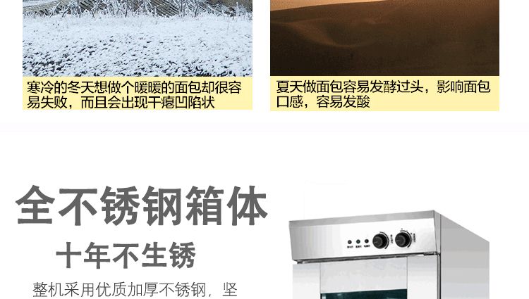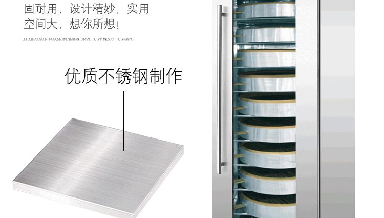 旭眾蒸籠醒發(fā)箱采用全不銹鋼制成,利用電熱管通過自動調節(jié)使箱內熱水加熱,產生大量水蒸氣。使箱內濕度達80-85%,可將溫度自動控制在35-40℃之間,形成適合發(fā)酵環(huán)境,并增設加溫干燒管及發(fā)熱片,保持箱內溫度以及把水珠加熱霧化,使發(fā)酵過程達到很好效果,是糕點生產配套的理想設備。