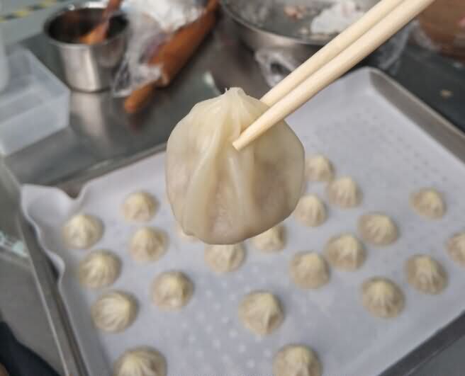 在沒有來旭眾之前只知道吃包子,來到旭眾后發現原來做包子還有這樣的工藝,不需要醒發直接蒸的是湯包,平常普遍見到的包子是醒發好的面包餡后再蒸,不同工藝不同效果,看著師傅們日復一日包子機試機操作演示,如果不是欠缺點面點工藝,我都要覺得自己也能用包子機做包子啦!