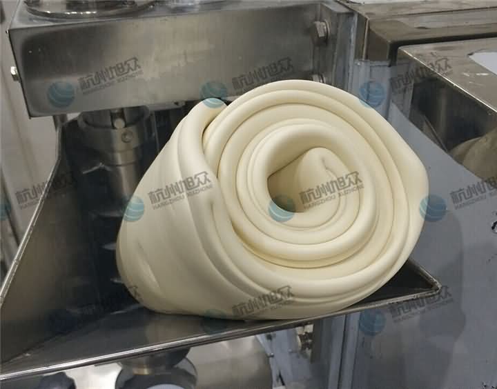2、普通面粉我們是有準備的,當然如果是特殊的面粉就需要自己帶過來,面粉先和面,再壓面,壓完面后放入SZ-612包子機的面斗中;