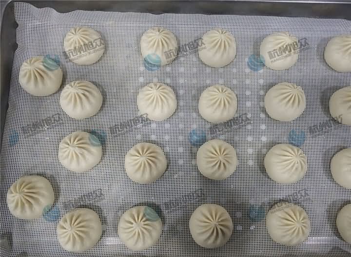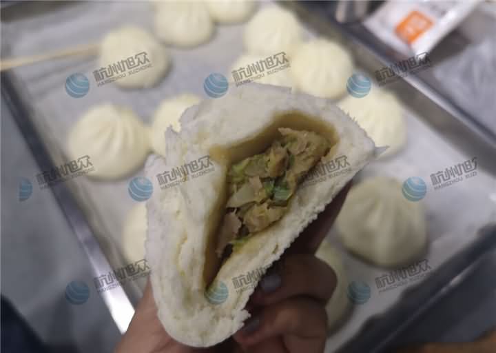 3、包子機調整面皮厚薄、克重后,再充餡,調整整個包子的克重,調整好后再批量生產包子,包子成型之后需要人工去將它們擺盤好,如果覺得人工撿盤累,可以選擇再訂購一臺SZ-08自動排盤機;