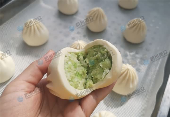 旭眾包子機每日工作無輪休,可以說它是一個不需要工作,每日正常工作,效率又快相當于8-10個員工手工包包子效率,偶爾需要配件的更換就可以滿足它,又會很精神的努力工作,今天它又開始做包子啦!這次做的是包菜餡的包子: