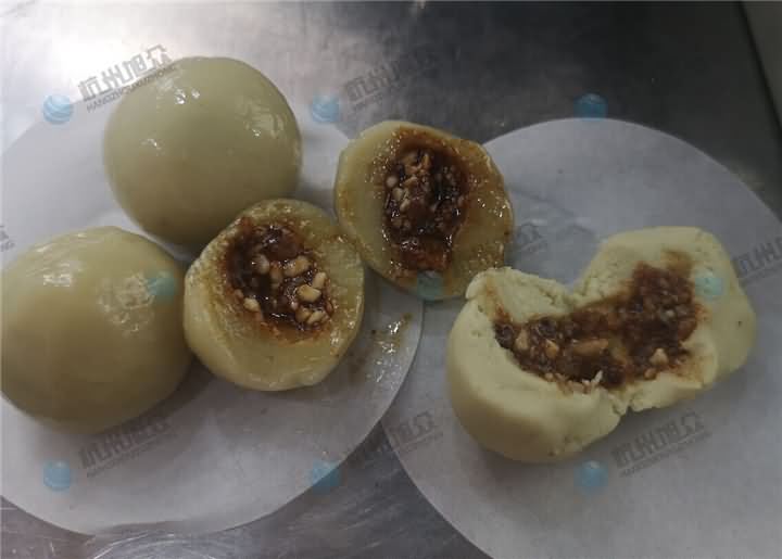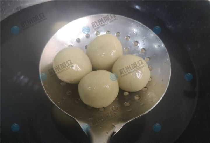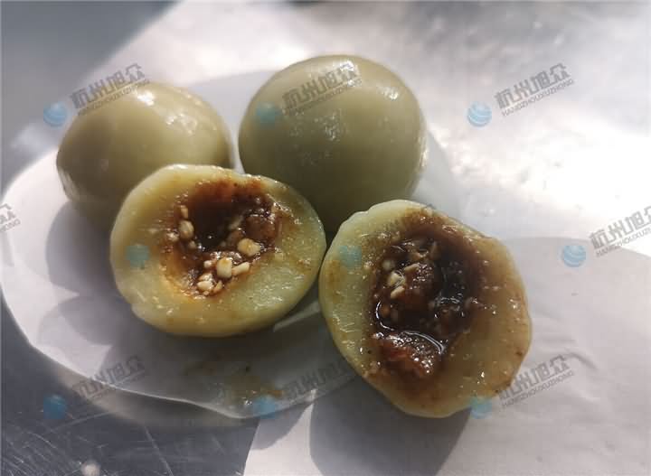 問了之后然后又帶走了些成品回去,要好好再研究他的地瓜圓子工藝,研究好后再決定是否購買湯圓機!!!雖然沒有現場成交下來,但是我們還是很高興能為客戶完善這工藝這一塊的問題,我也是很期待他即將來買湯圓機的那天。那么我們來看看湯圓機做出來的地瓜湯圓/圓子的效果: