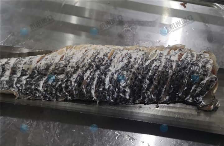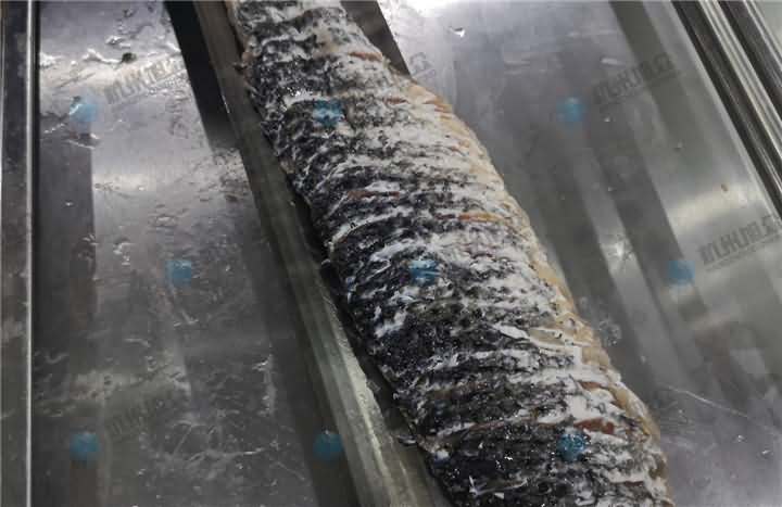 切魚片機大概二十秒左右就能將半條魚身切好片,速度不是人工可以比的,就是有個遺憾一臺切魚片機只能有一種規格,最薄的規格可定做1.8mm的厚度,再薄就定做不了了。歡迎來電400-885-2117咨詢切魚片機!