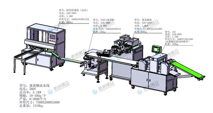 蛋黃酥是由小麥、黃油、蛋黃等做成的傳統中式糕點。近年來隨著用料的不斷升級,蛋黃酥逐漸成為一款網紅產品。這么熱銷的特產自然旭眾機械也要插入一腳,通過不斷研發生產,終于由酥餅機改裝定制成蛋黃酥生產線,那么這一條生產線究竟由什么機器搭配的呢?