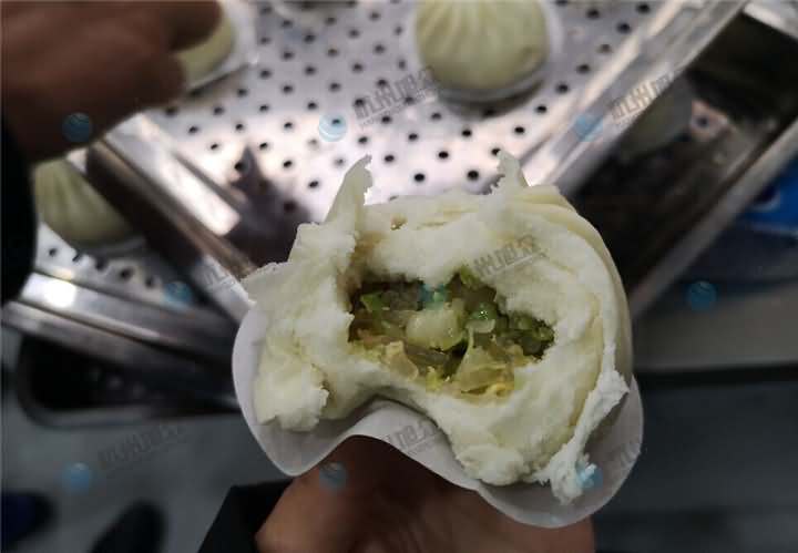 你能相信兩種口味相反的餡料都是通過一臺包子機制作出來的嗎?現場考察包子機客戶們相信,因為他們直觀了包子機做香辣粉絲包和包菜粉絲包的過程,并醒發和蒸煮后品嘗了包子機做出來的包子口感,不僅外觀上俘獲了客戶的視覺,也俘獲了他們的味覺,因為餡料是客戶自己帶過來的,就是面粉的話用的是廠家的,整體上來說不管是效率還是制作成品的外觀上,客戶已經為包子機打上了滿滿的分,在經過品嘗口感后發現比員工手動包的包子口感無差別,有可能還要更甚(當然也有配方問題)。包子機的優勢暴露在客戶的面前,想不買都不行。