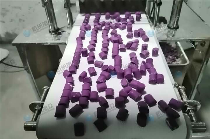 紫薯芋圓究竟是用湯圓機還是芋圓機呢?以往我們客戶做的芋圓都是方方正正的那種,近期有某個客戶也是做的紫薯芋圓,自然而然就給他推薦了芋圓機,當他帶著做好芋圓來到我司后,發(fā)現(xiàn)原來他做的紫薯芋圓卻是圓形的,如果是圓形的芋圓那就不好再用芋圓機去生產,轉而選擇VFD-1200湯圓機。那么湯圓機制作的紫薯芋圓是怎樣的呢?