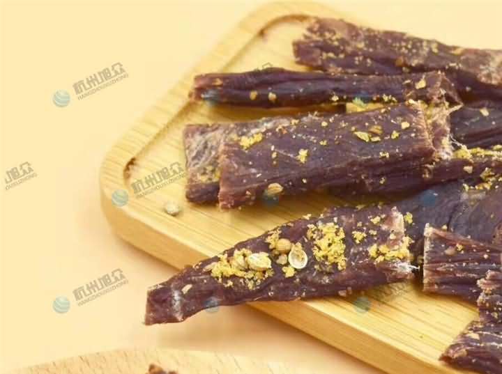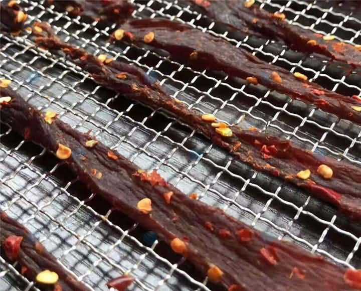 牛肉干的生產工藝流程:選料→腌制→烘干→冷卻→包裝,研究表明,與傳統工藝相比,通過循環熱風烘干的牛肉色澤更均勻,口味更佳,并且可以有效的避免因天氣因素造成的變質問題,且要保證牛肉的口感。那么先來看看經空氣能烘干機烘干后的牛肉干效果: