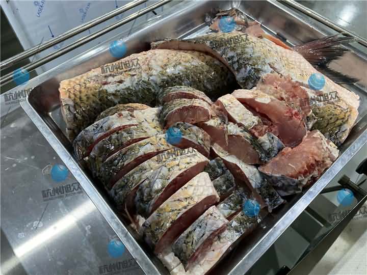 鮮魚剁塊選用什么機(jī)器呢?專業(yè)魚肉加工設(shè)備廠溫馨建議使用XZW-130禽肉類剁塊機(jī),專業(yè)剁雞塊、鴨塊、鮮魚塊等食品,為何我會有如此的底氣說呢?那自然是來考察過剁塊機(jī)試剁鮮魚塊的客戶也是真的多,客戶是不一樣的客戶,魚也不是一樣的魚,卻是通過同一臺XZ-130W禽肉類剁塊機(jī)剁鮮魚塊,剁塊效果好,安全又高效!