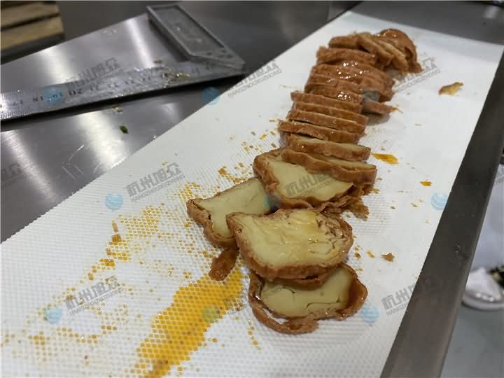 素雞切片選擇哪款設備呢?自然選擇熟肉切片機,該機切片厚薄可1-20mm可隨意調整,切片厚薄均勻,不信,可寄物料到旭眾機械廠,這不老板立馬寄了兩包素雞過來,現場用熟肉切片機切素雞片,拍了視頻及成品再給客戶寄回去,5mm、3mm切片毫無壓力,那么我們來看熟肉切片機切素雞片效果:
