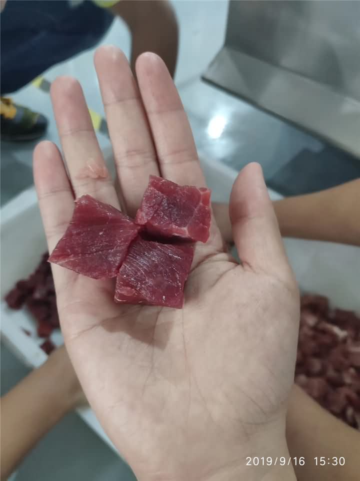 想要切正規的肉丁請選擇切丁機,如果只是切肉粒,那么選擇絞切機便可。那么選擇切丁機切出來的肉丁究竟有多正規呢?