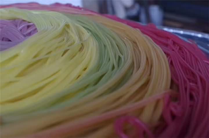 多功能米粉機(jī)做七彩米粉的效果: