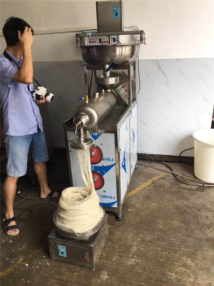 小型米粉機(jī)的工序先將米粉磨成米漿,往米粉機(jī)加入水后等溫度達(dá)到100°后,再由人工將米漿倒入入漿口,稍等片刻就可以自動成型米粉,然后有的客戶就認(rèn)為倒米漿這個(gè)步驟比較麻煩,想要能自動倒?jié){的設(shè)備搭配米粉機(jī)一起。于是米粉機(jī)研發(fā)部門最終研發(fā)出自動下漿攪拌一體的米粉機(jī)器!客戶用起來還很滿意,這不剛剛發(fā)來了他在操作米粉機(jī)做米粉的效果: