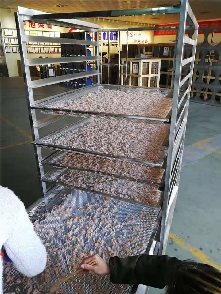熱泵烘干機(jī)干燥大蝦智能控制,節(jié)能無(wú)污染,可分階段設(shè)置溫度、濕度、干燥時(shí)間等,熟練掌握烘干工藝,干燥出的大蝦品質(zhì)好,附加值高。且烘干過程無(wú)需專人看管,省工省力。把蝦米放到烘干盤上,一盤一盤放到烘干架上,然后推進(jìn)烘干機(jī),要適當(dāng)翻動(dòng),使其迅速、均勻干燥。海鮮類產(chǎn)品烘干溫度宜保持低溫狀態(tài),所以建議考慮烘干機(jī)的客戶選擇雙效低溫高溫烘干房一體機(jī)。