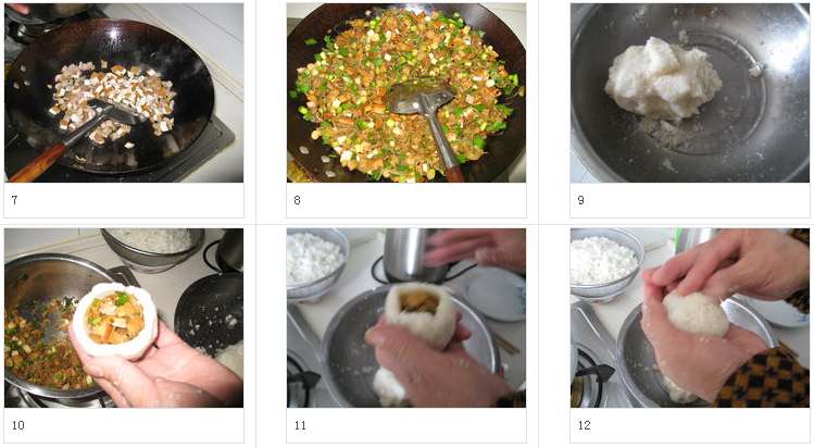 11.慢慢把口捏攏。這個不比面團(tuán),沒有彈性,故只能不斷的把米團(tuán)往上推,最后合上口。如果感覺比較粘,可以放一邊沾水處理。