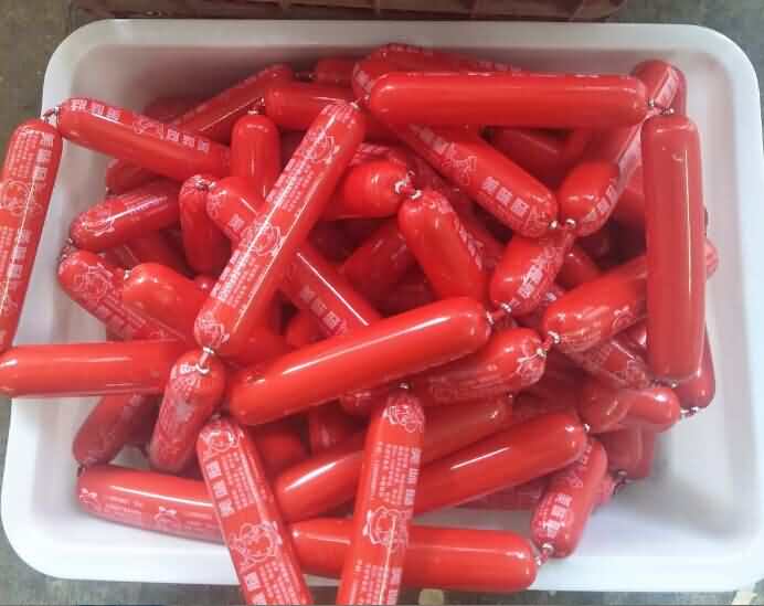 XZ-II型鋁絲雙卡自動打卡機是與XZ-I型自動定量灌裝機配套使用的設備,用來將灌好的火腿腸用鋁絲一次性打卡封口,并能連續作業,每分鐘封口30—40根火腿腸。生產數量有電子計數器顯示,扣型為雞心扣,打卡緊密、扣型美觀,機器帶有摟緊拉伸機構,摟緊粗細可調,拉伸長度可調,故而可調節火腿腸灌制飽滿程度。腸衣適用范圍為尼龍收縮膜、尼龍膜、PVDC膜、復合膜均可使用,腸衣規格直徑為30-90mm,鋁絲直徑Φ2.1—Φ2.9mm,機器使用1Mpa0.8立方米/分鐘空氣壓縮機為動力(空壓機客戶自配)用氣缸驅動部件完成打卡的動作。灌腸打卡組合機可灌制各種腸類如臘腸、火腿腸、肉泥腸、大眾腸、紅腸、菜腸、粉腸及松江腸等。